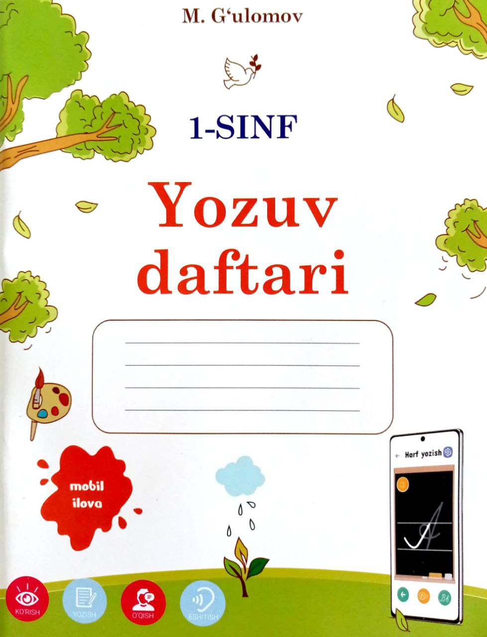 Alifbo rangli rasmlar bilan purjina bilan mahkamlangan harflarni alohida ko'rsatadi..