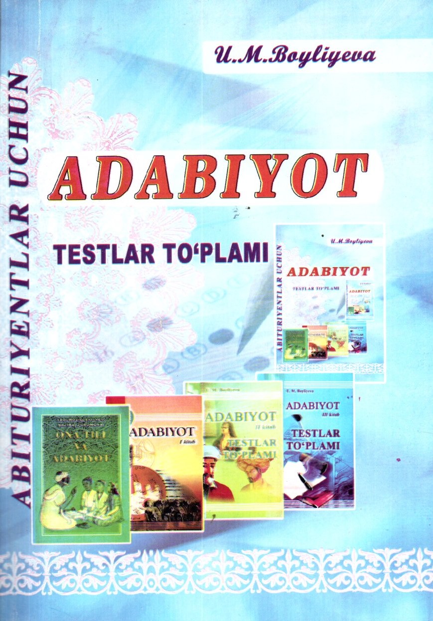 Ushbu to'plam adabiyotdan savol-javob va testlar majmuasi bo'lib, unda 5-9 sinf, kasb-hunar kolleji hamda akademik litseylarning adabiyot darsliklarin..